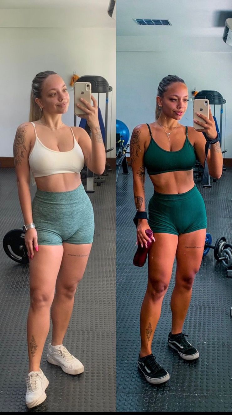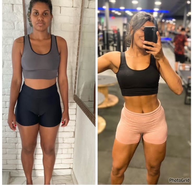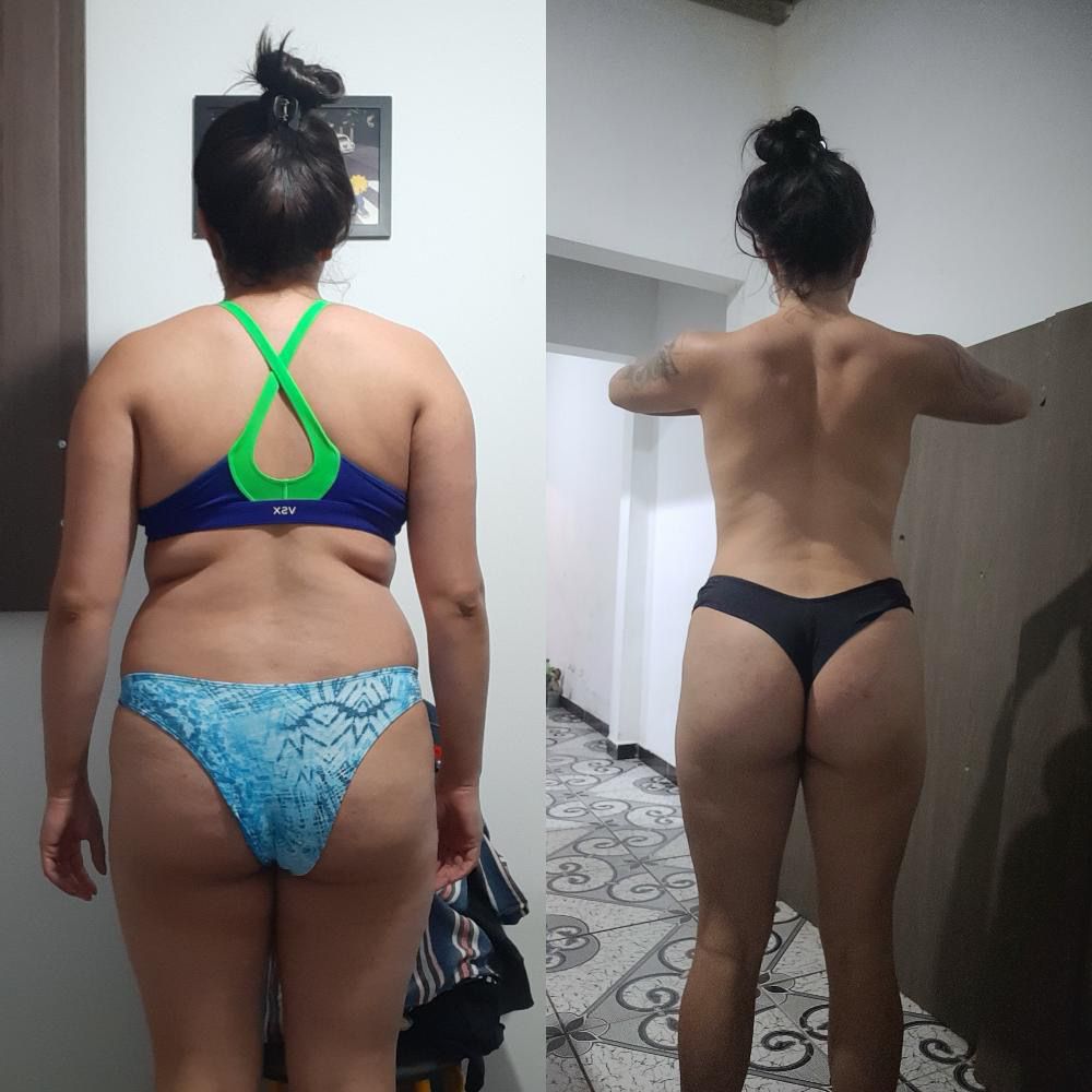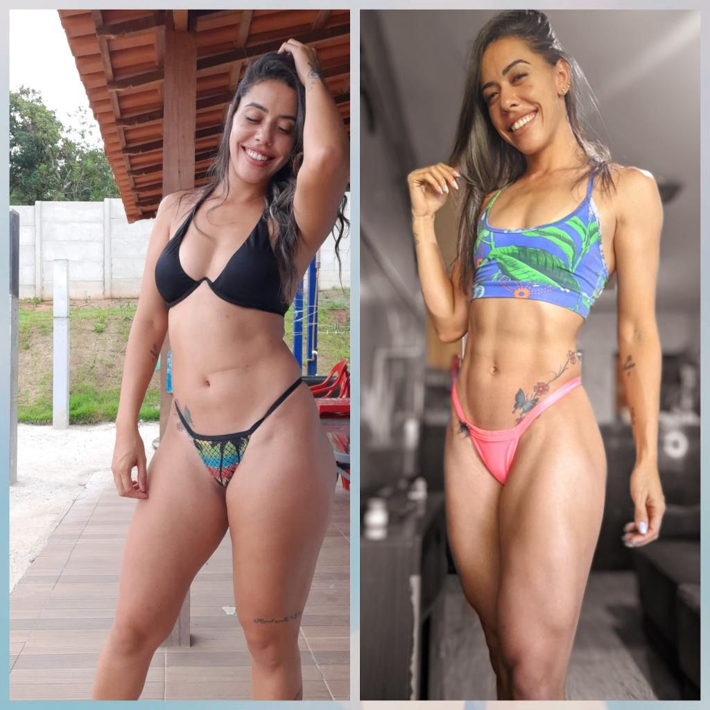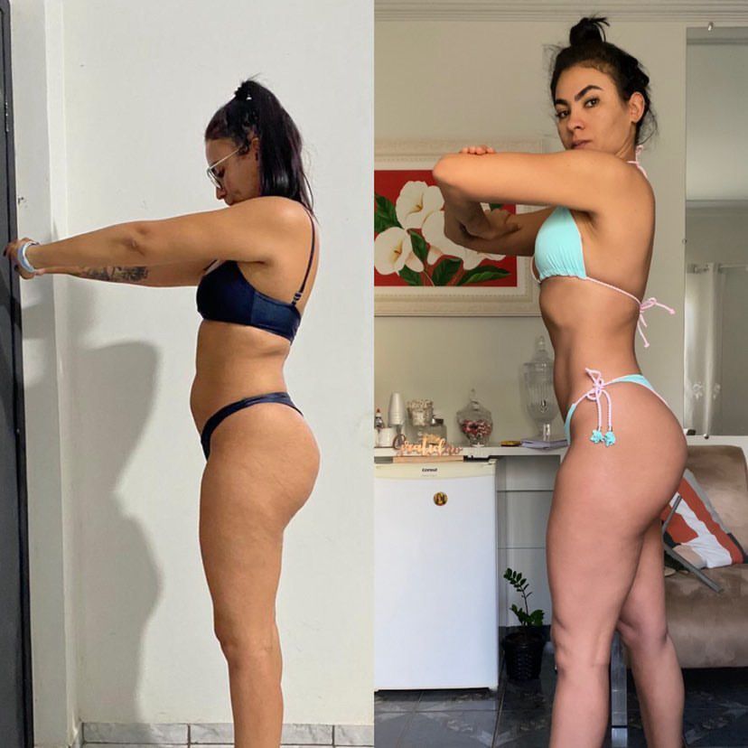 "AAAAAH to chocada com esse antes e depois, como meu corpo está tomando formas agora! A minha alimentação sempre foi certinha, mas ficava perdida na execução dos exercícios. Vocês vieram e salvaram minha vida hahaha só tenho a agradecer por isso. Obrigada por todo aprendizado, obrigada por nos salvar com A MELHOR PLATAFORMA DA VIDA ❤️❤️"